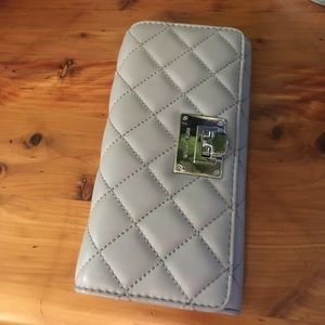 Michael Kors quilted leather Susannah Large tote bag in pearl gray & Astrid carryall clutch quilted pearl gray. These items were purchased in April 2017 & I changed my mind. Only used a handful of times and was protected with Michael Kors leather cleaner & conditioner & protect solution. Like brand new condition.Large tote has beautiful silver chain details & soft quilted leather.It has a zippered middle compartment & tons of other storage. Wallet has interior coin slot & tons of card slots