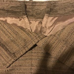 Nubby, textured tweed like fabric is fashioned into a curve-hugging shift with a flattering strapless sweetheart neckline. Color is fatigue green, lace edged lining, zip up back, slit in back, rubber edges inside top to help keep in place. Made in the USA.