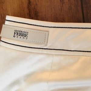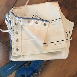 EUC White crop jeans with blue piping and eyelet lacing detail at ankle. Very little wear, in excellent condition. Made in Italy, hand wash. Euro size 46. Almost Vintage.
