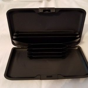Excellent Used Condition - RFID Protection Plastic Hard Case Wallet - Pink/White Dots. Has snap closure. Four small credit card slots (but can fit a few in each) and three larger slots. Back side has ridges. Front is smooth. Smoke-free and pet-free home.