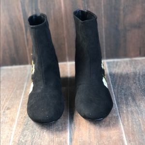 Ankle low heel bootie. First picture shows similar style. Thank you
