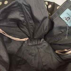 Judith March Gray polka dot sweetheart dress! Strapless with zipper in the back! Pretty satin teal green bow in the front! Size Large! 31 inches long. Bust measuring across the front 17 inches. Gently used condition! Great find for sure!