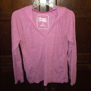 Comfortable long sleeve hoodie tee. Wrinkled, but otherwise in excellent shape.