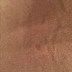 Tri-colored 100% silk dress from bebe. Has dark brown lining. Comes with a string belt. Has one very delicate belt loop made of a string. The other one is missing. Elastic at waist and around neck. Open cut out in the back. Thin straps. Size S. Dry Clean.