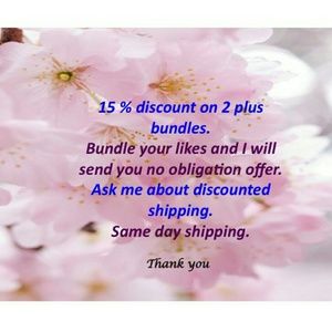 @katrina851 thanks for the like. I also offer 15 % off of 2 plus bundles. Let me know if you have any questions.