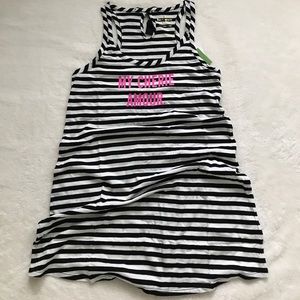 Very cute Kate Spade black and white striped chemise with "My Cherie Amour" (my dear love) in pink on the front, with a bow over a keyhole in the back.