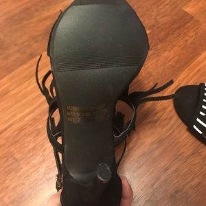 Wild Diva Adele printed strapping sandals with fringe. Totally on trend and cute! Suede material with sturdy heel. Throw these on with a little black dress or jeans and you're good to go! New without box, never worn. 4 inch heel.