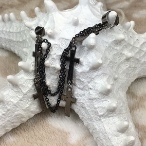 Brand New. Gunmetal black earring cuff. 2" Long earring side and the cuff is 3" Long. This is for 1 Earring only.