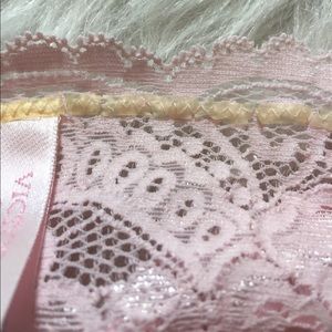 Victoria's Secret bralette. ALMOST VINTAGE since it was made in 2002!!!! These are very hard to find! Excellent condition as I'm too pale to wear this color. Baby/light pink color. Bow on front. Adjustable straps. Yellow lining all around top inside (unnoticeable when wearing) that has cracks throughout from being old (see last pic). Please feel free to ask questions or submit offers if you're interested :)