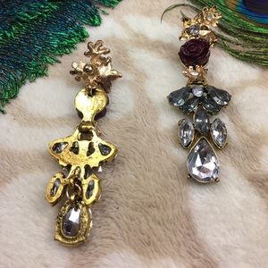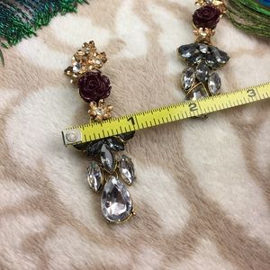 Brand New. Burgundy purple rose with rhinestone drops. Gold toned. Earrings are on the heavy side.