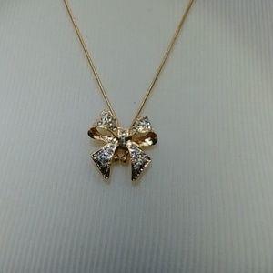 Dainty Bow-Tie adjustable crystal necklace gold color 24 in Long brand new