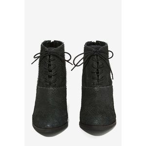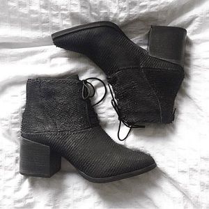 NIB Black Pointy Toe Lace Up Scaled Leather Boots