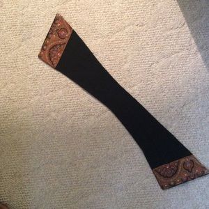 Vintage neck scarf, circa 50s-60s, Odette Mallorca designer, intricate bead and sequin on black wool, perfect condition, length at longest point 36", width at ends 8", width in center 4"