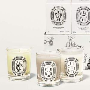 This miniature candle by diptyque is filled with fragrance favorites that warm your home, filling it with beautiful scent.