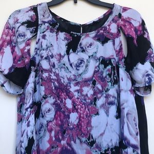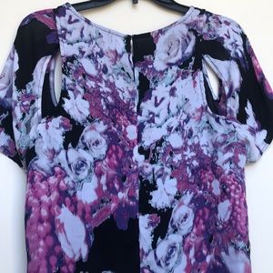 I ❤️ RONSON Purple Floral Short Sleeve BLOUSE SZ LARGE