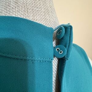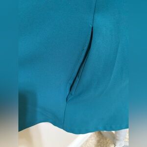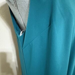 Poly blend, fully lined, with a halter neckline and back keyhole button closure. Features a side seam pocket and measures approx. 32” from shoulder to hem. Hand wash cold. Brand new with tags.