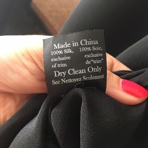 The straps consist of large faux safety pins. Deep low-cut back. Very sexy. 100% silk. The zipper must be pulled gently. Just dry-cleaned!