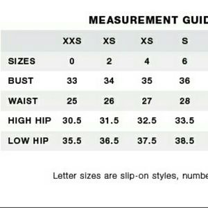 @jeaniegirl1008 I just realized part of the chart got cut off. First line is Size, 2nd line Bust, then Waist, then High hip, then Low Hip.