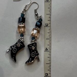 Elevate your style with these chic boot earrings from . Featuring a bold black and silver design, they're perfect for adding a unique touch to any outfit.