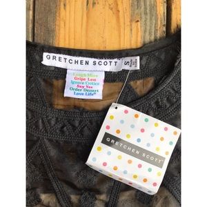 Sold via EBay ✨Style description: NWT Beautiful black sheet Gretchen Scott dress with beige slip connected on interior. Edges are factory frayed and raw.