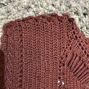 Gorgeous crochet crop top worn once! Buttons on sides and detailing on the crochet is beautiful! Soft on side and not itchy at all! Very flattering and makes such a cute outfit for summertime.
