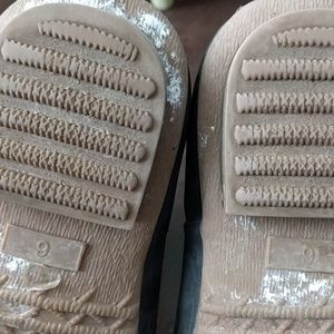 Super adorable and comfy boots. Barely worn. Durable rubber. The rubber part is grey with beautiful coordinating brown. Cute buckle on one side.