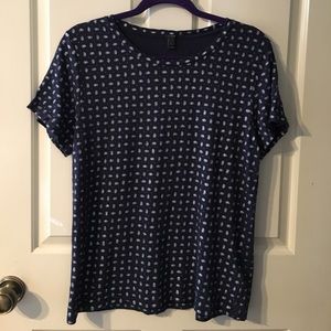 Navy blue tee with glitter paisleys. Runs small. Worn once