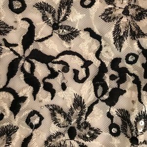 πFINAL PRICEπBeautiful cream and black sequin and lace tank. Black and cream embroidery on cream lace with silver and black sequins and silver baguette beads.....so pretty! Fully lined in 100% silk. Shell is nylon. Dry clean.