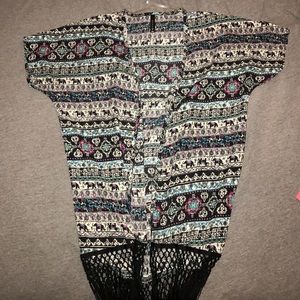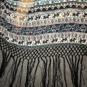 Bohemian Print Kimono w/ black fringe on bottom. Fits loose & is Super Cute!!