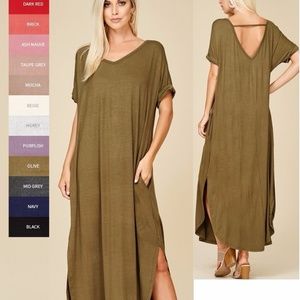 New boho chic maxi dress.Super comfy. Over sized, loose fit v-neck long maxi dress featuring side slits and side pockets. high quality and stretchy fabric. Runs big. And meant to be.