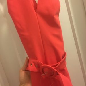 NWT Bebe belted pink/coral dress. Never worn. Perfect for all occasions. Classy yet sexy.