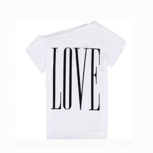 White Off-Shoulder "LOVE" Graphic Tee Sm & Med