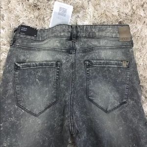 Features a skinny fit, semi destruction with stitching accenting the back pockets. The gray neutral color goes well with any color & they are SUPER comfy!!