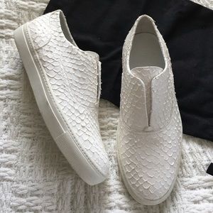 Brand new in box and dust bag included. Some marks in back from black box. Rich, python-embossed leather lends a sophisticated feel to a casual slip-on sneaker. Elastic panels secure the tongue. Rubber sidewall and sole. Soze 8 and 8.5 (no dustbag) available. Offers welcome through offer tab. No trades. 10725171351
