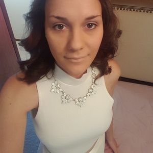 EXPRESS IVORY BONDED MESH CROPPED TANK &FULL SKIRT