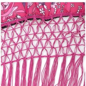 Brand new boutique item. Beautiful trendy bohemian mandala kimono cover up with sleeves. Perfect for a day out or wearing as a cover up. Gorgeous vibrant colors and knotted fringe details. Lightweight Material: chiffon. Hand wash cold. Hang to dry. One size fits all. Length:28.7+9.8inch of fringe