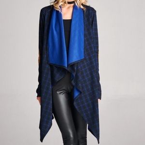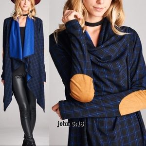 Long sleeve cardigan jacket with waterfall styled front, suede elbow patch #20