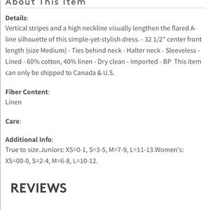 Super cute New striped dress that ties behind the neck. Perfect for a summer outing!! 60% cotton and 40% linen. Dry clean. Size xs. No trades