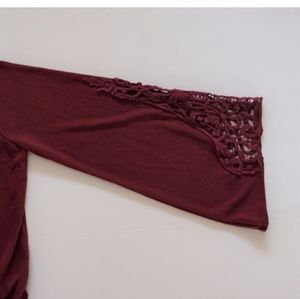 Bell Sleeve Lightweight Sweater Wine Crochet Detail Wrap Front