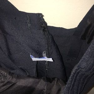 Black stretch Bandage dress with back zipper closure and criss-cross back straps by Hervé Leger Couture, about a size small. Minimal wear on the dress itself, but the brand tag is loose and the size tag is missing--this is an easy fix! Super cute for sexy summer cocktails or black tie events with the right accessories!