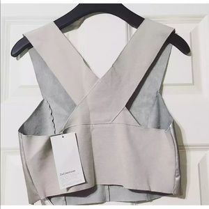 ZARA WOMENS LEATHER METALLIC SILVER CROP TOP | S M