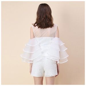 🎁 White Layered Tulle Side Sleeve Top