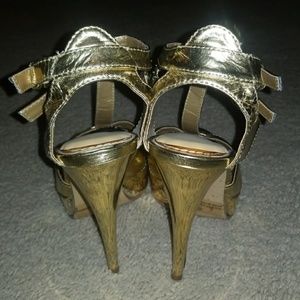 Metallic Gold Stilettos - Like New! Worn once and come with foot cushions attached.