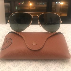 FRAME: Gold LENSES: green classic g-15 NON POLARIZED These are in great condition- just don't love the way they fit my face anymore! 😎