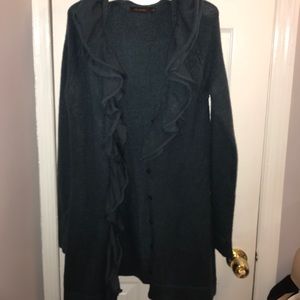 THE LIMITED BRAND long sleeve Knit sweater SIZE MEDIUM in hunter green with ruffle detail around v-neck line and button down center! NEW WITHOUT TAGS NEVER WORN!!! SUPER WARM & COMFY im 5'5 & length comes about mid thigh β