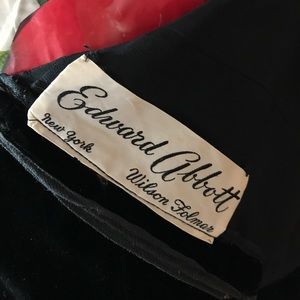 Hi Gabby, Thanks for your interest in my vintage cocktail dress. It's an awesome piece. I could wear it at 49, but not at 51! It dates to about 1955/1957. After that Wilson Folmar left Edward Abbott to start his own design house. The label also fits that time frame. The sleeves are designed to sit near the edge of shoulders and it shows a lot of back. That cameo kinda frame of the bosom and shoulders ya see in old films of the late 50s/early 60s. Cheers! Amy