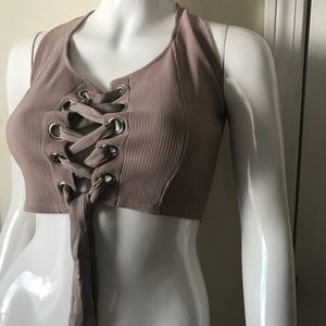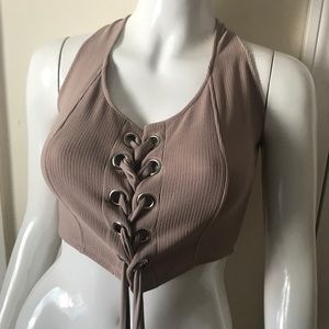 Mauve adjustable Lace up crop top: NWOT Never Worn. Size Small but fits like a Medium