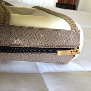 Designer Inspired, this seductive design will turn heads for sure! Has a mauve colored snake-embossed shaft w/back zipper closure, w/lustrous gold welts, paired unexpectedly with hemp knotted-rope straps to provide a fashion-forward take on a fierce gladiator sandal. Labeled as a 37 (US 6.5/7) but fit more like a size 9.