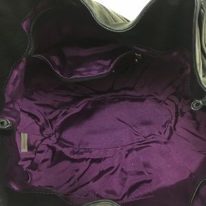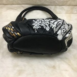 NWOT Isabella Fiore Black Leather Purse with gold and silver metallic accents and white floral embroidery. Beautiful deep purple inside. Comes with dust bag. Perfect condition and clean. Never used!