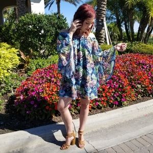 Navy Floral Abstract Print Off Shoulder Bell Sleeve Dress. No trades. Price is Firm Unless Bundled.